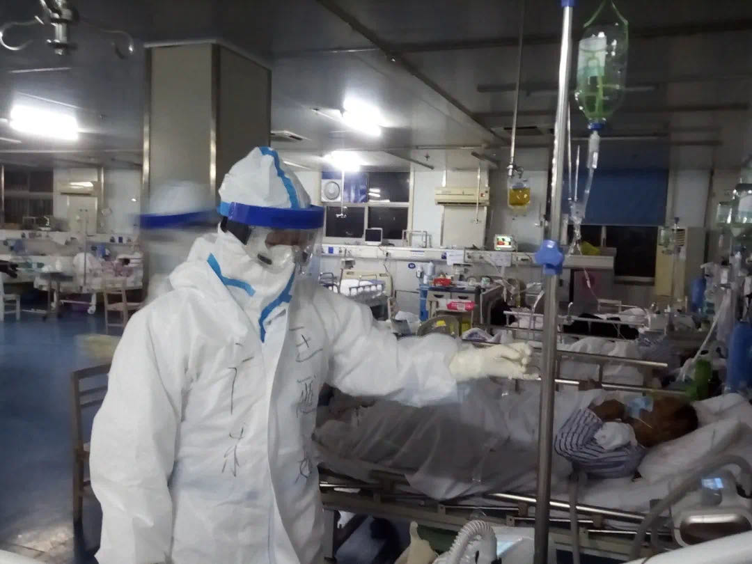 醫(yī)生在病房?jī)?nèi)照顧病人
