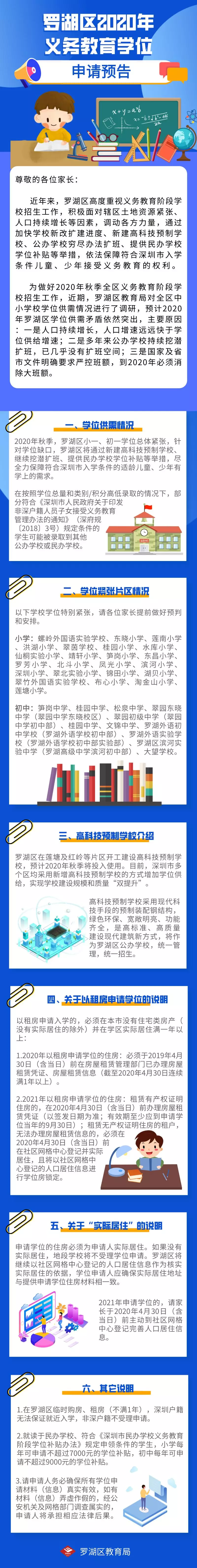 記者29日從羅湖區(qū)教育局了解到,為做好2020年秋季全區(qū)義務教育階段學校招生工作,近期,羅湖區(qū)教育局對全區(qū)中小學校學位供需情況進行了調(diào)研。調(diào)研結(jié)果顯示,由于人口增速遠遠快于學位供給增速,擴班空間有限以及國家及省市文件明確要求嚴控班額的要求,預計2020年羅湖區(qū)學位供需矛盾依然突出。申請預告指出,按照學位總量和類別/積分高低錄取原則,部分符合規(guī)定條件的學生可能被錄取到其他公辦學?;蛎褶k學校。部分學校學位特別緊張,請各位家長提前做好預判和安排。針對2021年申請學位的學生,請家長于2020年4月30日(含當日)前主動到社區(qū)網(wǎng)格中心登記完善人口居住信息。
