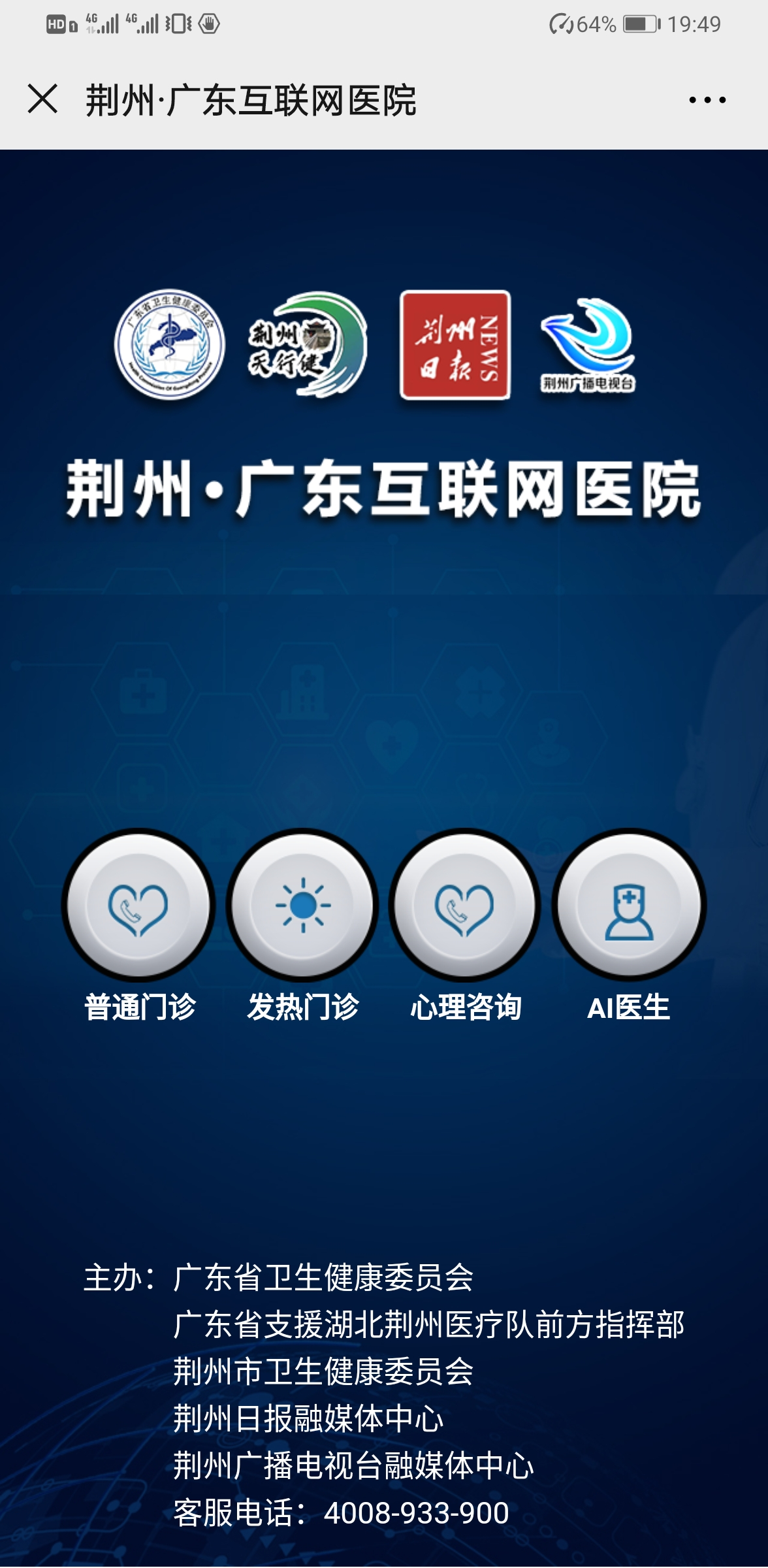 這家互聯(lián)網醫(yī)院是由廣東省衛(wèi)生健康委和廣東支援湖北荊州醫(yī)療隊前方指揮部聯(lián)合,在充分研判荊州疫情防控形勢的基礎上組建的網上醫(yī)療隊,實現荊州市民足不出戶,即可享受后方優(yōu)質的線上服務資源,為前方“主戰(zhàn)場”減負。