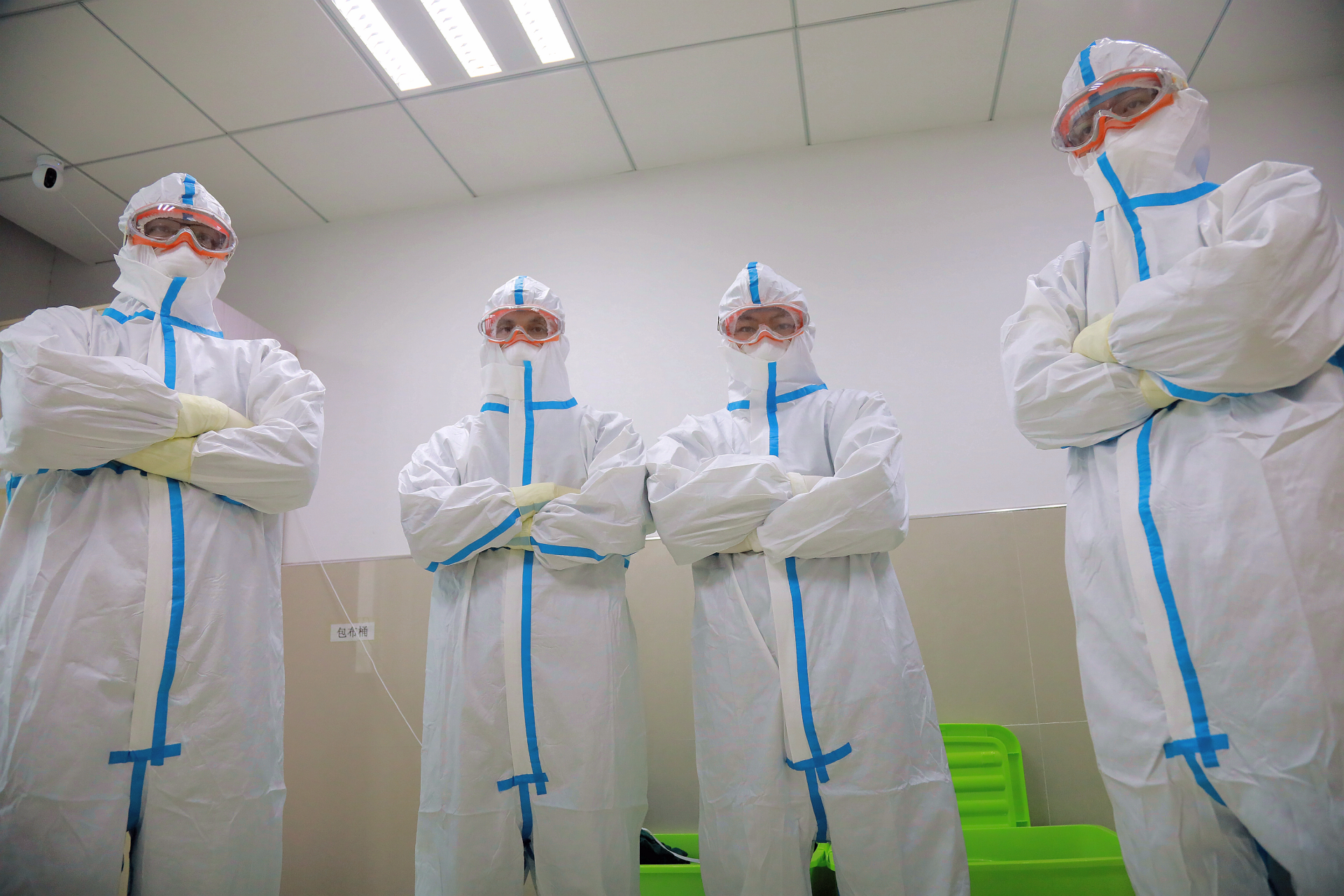 “四小金剛”與珠海中醫(yī)院重癥監(jiān)護(hù)科的戰(zhàn)友蘇文平(中)在進(jìn)入戰(zhàn)位前合影。