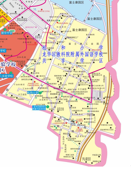 龍華區(qū)教育科學(xué)研究院附屬外國(guó)語(yǔ)學(xué)校小學(xué)部與松和小學(xué)、初中部與新華中學(xué)共享學(xué)區(qū)范圍,兩校在共享學(xué)區(qū)范圍內(nèi)統(tǒng)籌招生。