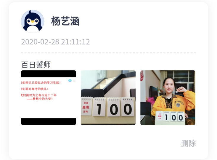 “光陰似箭,日月如梭,一晃眼,高中三年馬上就結(jié)束了,現(xiàn)在還有最后100天,我們就將面臨人生的第一道大關(guān)——高考!高中三年堅(jiān)持為此,高中三年拼搏為此,最后的100天,努力復(fù)習(xí),祝自己也祝大家,高考順利!”高三(16)班的陳國松在班級群里給大家送出了祝福。