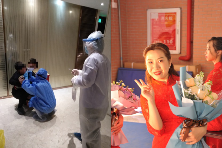 張家琪,新港社康中心全科醫(yī)生,2月10日是其早早選定的結(jié)婚日子,本該是穿上婚紗成為眾人矚目的新娘子,現(xiàn)實(shí)是一身隔離衣,作為社區(qū)疫情防控成員穿梭在大街小巷,腳起泡、衣服濕透是常有的事,隔天照常上班,小小的身體似乎有用不完的能量。疫情至今共核查近300人次,協(xié)助轉(zhuǎn)運(yùn)、協(xié)助核酸檢測(cè)共計(jì)100多人。