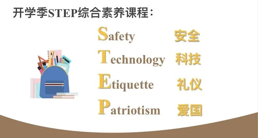 開學(xué)第一周不上常規(guī)課,上的是“STEP綜合素養(yǎng)課”,學(xué)生成長中心的肖璇、王芷涵老師分享大受學(xué)生歡迎的“STEP綜合素養(yǎng)課程”。STEP,是4個(gè)英文關(guān)鍵詞的縮寫,即Safety(安全)、Technology(科技)、Etiquette(禮儀)、Patriotism(愛國)。通過18個(gè)單元模塊的開學(xué)季活動(dòng)課程,貫通九年,融通各學(xué)科邊界,立德樹人,立健康之本,育中華之情,鑄創(chuàng)新之魂,在系列課程中,傳承文化自信。