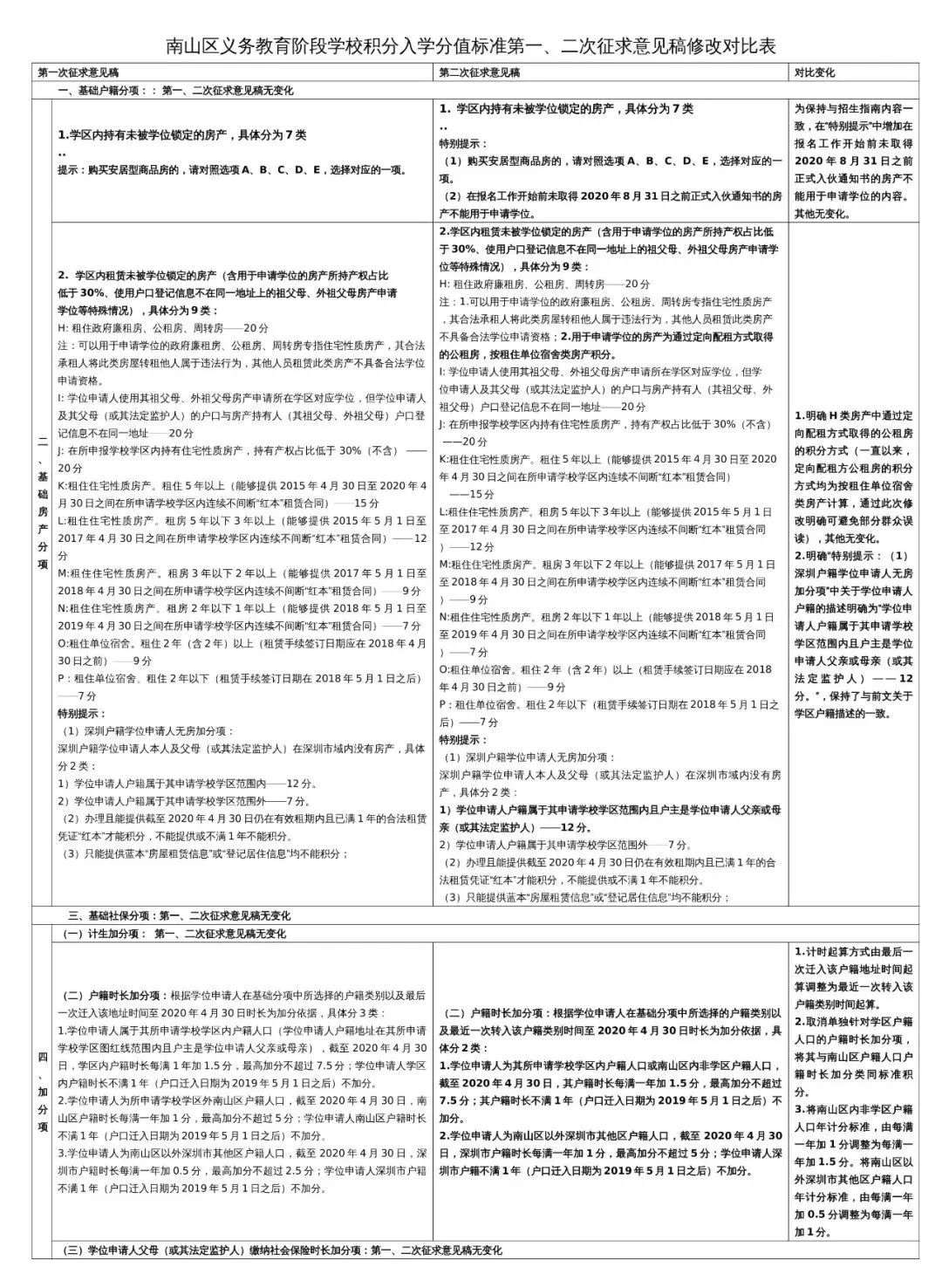 從積分的調(diào)整來(lái)看,變化最大的就是加分項(xiàng),增加了“戶(hù)籍加分”和“社保時(shí)長(zhǎng)加分”,只要是深戶(hù),無(wú)論是學(xué)區(qū)內(nèi)、南山區(qū)、還是南山區(qū)外都可以加分;可見(jiàn)優(yōu)勢(shì)偏向于深圳戶(hù)籍。