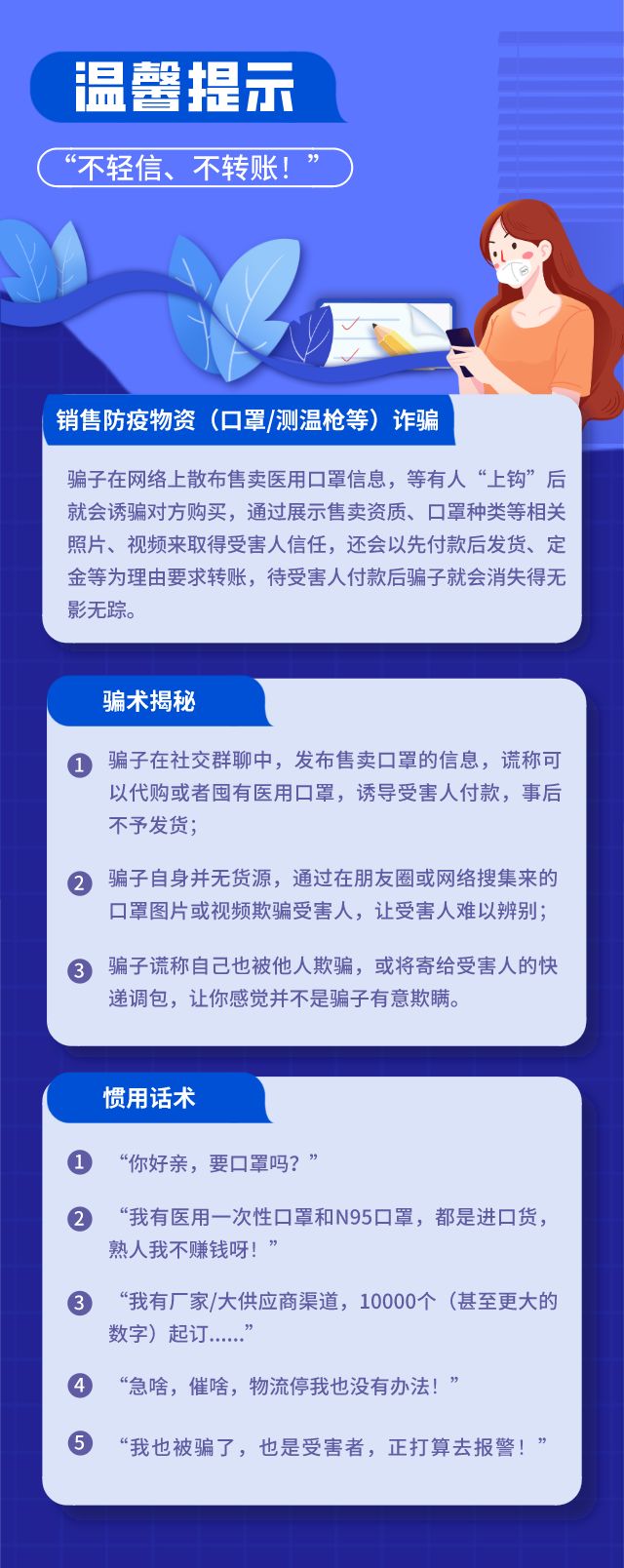 “我來報警!群里有人騙我口罩錢!” 3月4日,事主李小姐匆匆來到深圳市公安局福田分局香蜜湖派出所報案并講述了自己被騙的經(jīng)過。 此前李小姐在某社區(qū)賣菜群里,看到了一名群友發(fā)布“口罩資源”的信息,于是加其為好友,對方向李小姐展示了售賣資質(zhì)以及售賣口罩的樣品,一步步讓李小姐放松了警惕,雙方以1.75元/個醫(yī)用口罩、9元/個N94口罩的價格談妥交易。 隨后李小姐通過轉(zhuǎn)賬先向?qū)Ψ劫徺I了一批口罩。李小姐覺得對方還挺靠譜的,就又分四次向?qū)Ψ睫D(zhuǎn)賬,分別郵寄給自己不同的朋友,累計向?qū)Ψ睫D(zhuǎn)賬了990元。 不料所有的錢轉(zhuǎn)過去之后,這個群友卻消失了,發(fā)信息不回,打視頻不接,雖未拉黑但也沒任何回應(yīng)。“十分氣人,被騙的錢雖然不多,但是一定要給詐騙分子嚴(yán)懲!”李小姐對民警這樣講述道。 民生小案無小事,數(shù)百元現(xiàn)金被騙,電單車被盜……這些看似平常的一件件“小”案,背后牽連的卻是廣大群眾的幸福感、安全感。 香蜜湖派出所民警聚力破小案,服務(wù)大民生,做到有案必偵,快偵快破。經(jīng)多方面調(diào)查后,最終確定了嫌疑人的身份——游某。3月9日11時許,福田警方將嫌疑人游某抓獲。 ▲嫌疑人通過網(wǎng)絡(luò)發(fā)布虛假信息進(jìn)行詐騙 據(jù)了解,游某于2019年下半年來到深圳,此前加入了一個社區(qū)賣菜群。不久前,游某因手頭緊,于是就在群里發(fā)布消息,謊稱自己有大量口罩待出售。 游某在群里發(fā)布買賣“口罩”信息,會不會還有其他的受害者?這是民警第一時間的直覺。隨著調(diào)查的深入,民警發(fā)現(xiàn)還有其他受害者與游某聯(lián)系購買“口罩”及多筆手機(jī)轉(zhuǎn)賬記錄,金額雖然不大,大多為80元、100元、115元、175元……各個個案的涉案金額看起來都是“小錢”,但我們的民警還是盡心盡力,絲毫沒有放松,一項項認(rèn)真核實并一一做好記錄。 據(jù)初步統(tǒng)計,從1月30日至今,游某通過向他人售賣口罩實施詐騙,累計詐騙4000余元,被騙的受害人多達(dá)16人! ▲民警抓獲嫌疑人 現(xiàn)游某對利用網(wǎng)絡(luò)實施口罩詐騙的行為供認(rèn)不諱,已被警方依法刑事拘留,在香蜜湖派出所民警的聯(lián)系下,目前已有受害群友相繼前來協(xié)助調(diào)查,案件仍在進(jìn)一步調(diào)查中。 ▲民警審訊嫌疑人 警言警語 香蜜湖派出所 民警鄭卓 疫情期間,不少企業(yè)和個人紛紛采購口罩等防護(hù)用品。針對利用口罩等防疫物資實施詐騙等違法犯罪行為的不法分子,福田警方堅決從嚴(yán)從快依法打擊。廣大市民謹(jǐn)記,購買口罩、消毒液等防疫物資,要通過正規(guī)途徑,做到“不輕信、不轉(zhuǎn)賬”,避免上當(dāng)受騙。