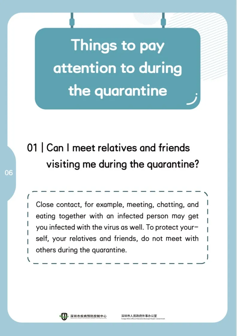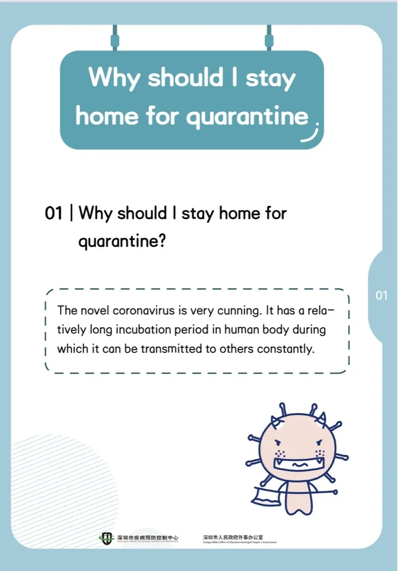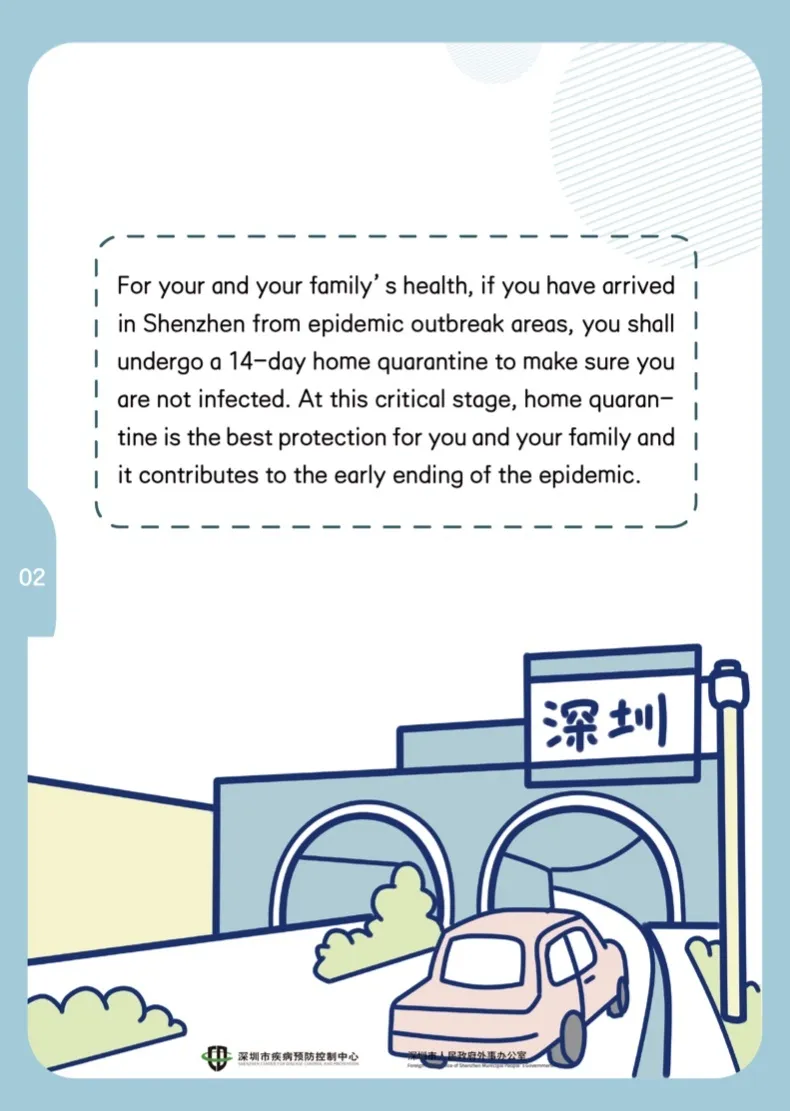 因此,為了您和家人健康,從疫情高發(fā)重點地區(qū)來深返深后,應當進行14天居家隔離,以確認沒有感染病毒。在這非常時期,做好居家隔離既是對您自己和家人最好的保護,也是為疫情早日結(jié)束做貢獻。
