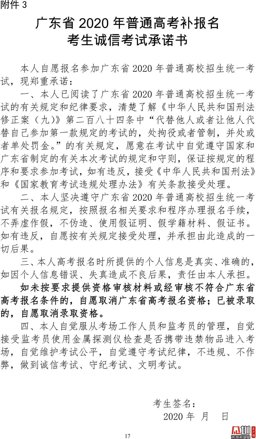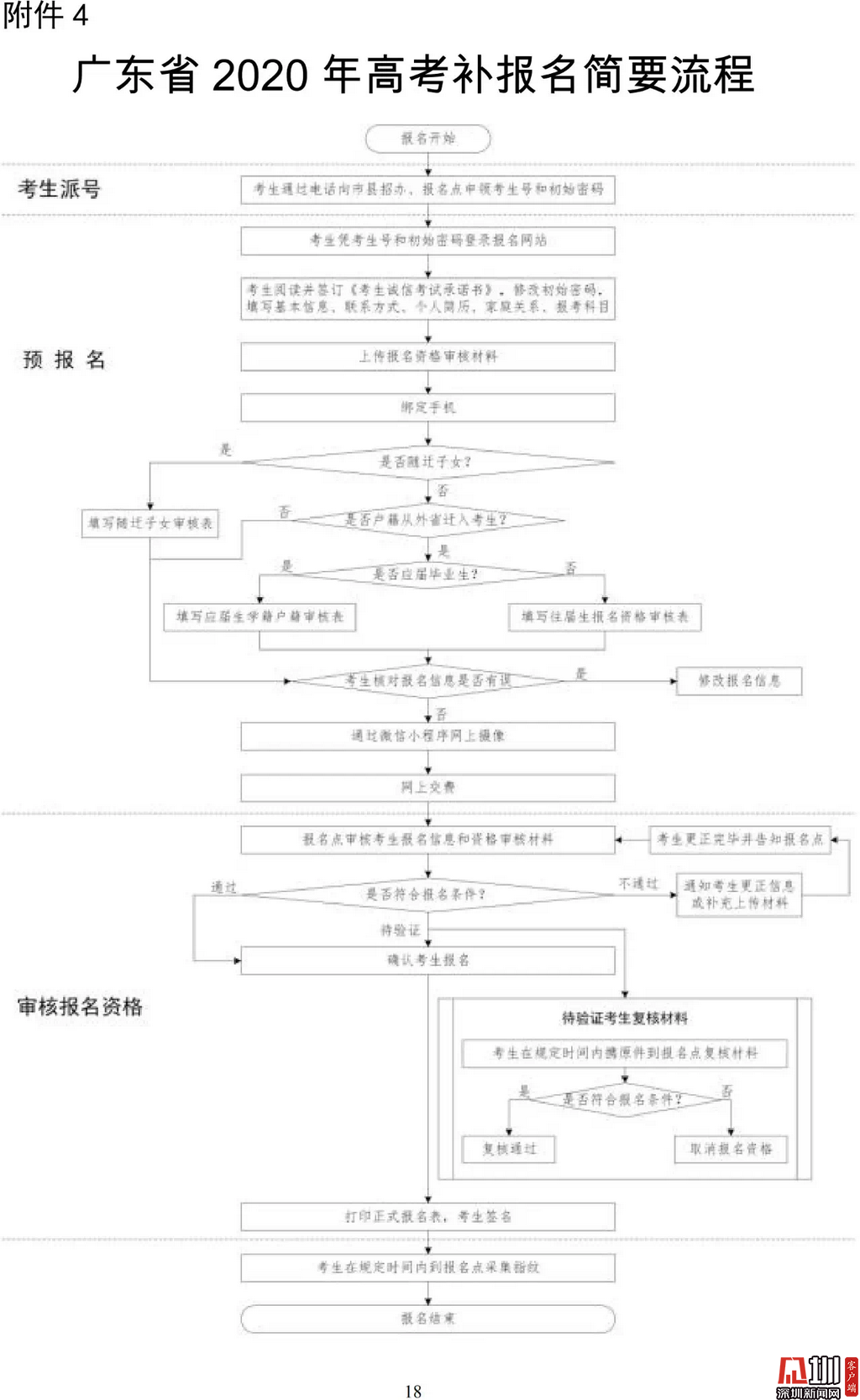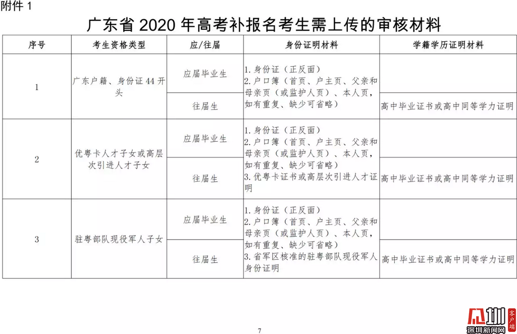 見圳客戶端·深圳新聞網(wǎng)2020年3月19日訊(見圳客戶端、深圳新聞網(wǎng)記者 金洪竹)3月18日,記者從廣東省招生委員會辦公室獲悉,為滿足退伍軍人、運動訓(xùn)練及武術(shù)與民族傳統(tǒng)體育考生、高職院校自主招生考生等符合我省高考條件,因各種原因尚未參加高考報名人員的需求,經(jīng)研究決定安排一次高考補報名,補報名時間為3月23-26日。同時,為確保考生和考試工作人員的生命安全和身體健康,減少聚集,本次高考補報名采取先線上辦理、后補驗材料的方式進行。