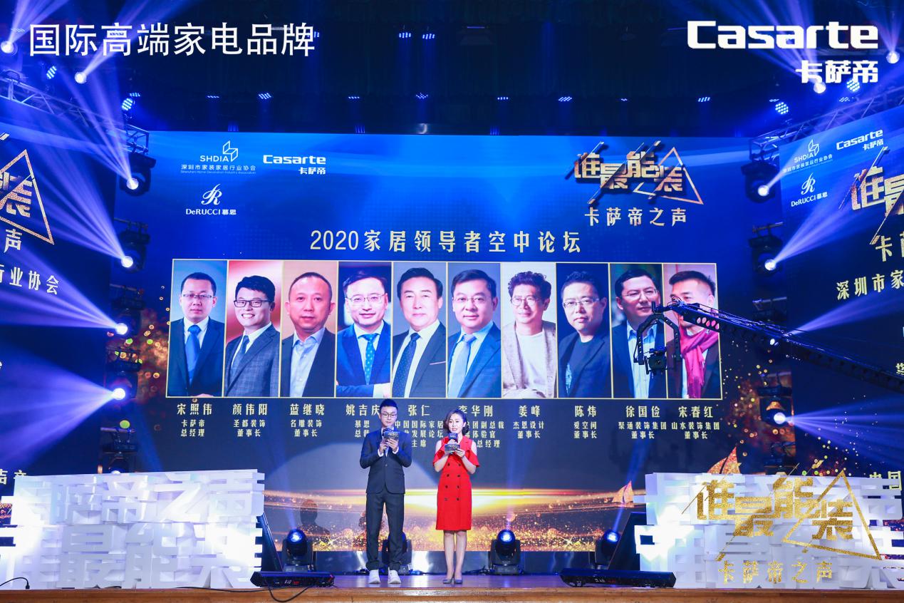 在疫情影響下,以《卡薩帝之聲——誰最能“裝”》為主題的中國家裝行業(yè)領(lǐng)袖年度演講以空場的形式進行,主辦方同時舉行了2020家居領(lǐng)導(dǎo)者空中論壇。中國國際家居產(chǎn)業(yè)發(fā)展論壇主席張仁,海爾集團副總裁、首席體驗官、中國區(qū)總經(jīng)理李華剛,中國室內(nèi)設(shè)計第一股、杰恩設(shè)計董事長姜峰,慕思總裁姚吉慶,上市裝企名雕董事長藍繼曉,愛空間董事長陳煒,中國室內(nèi)裝飾行業(yè)協(xié)會副會長、上海聚通裝飾集團董事長徐國儉,國際高端家電品牌卡薩帝總經(jīng)理宋照偉,杭州圣都裝飾集團董事長顏偉陽,安徽山水裝飾集團董事長宋春紅等來自全國泛家居領(lǐng)域的十位領(lǐng)袖空中助力,通過視頻方式來推動家居行業(yè)發(fā)展。