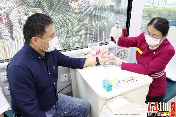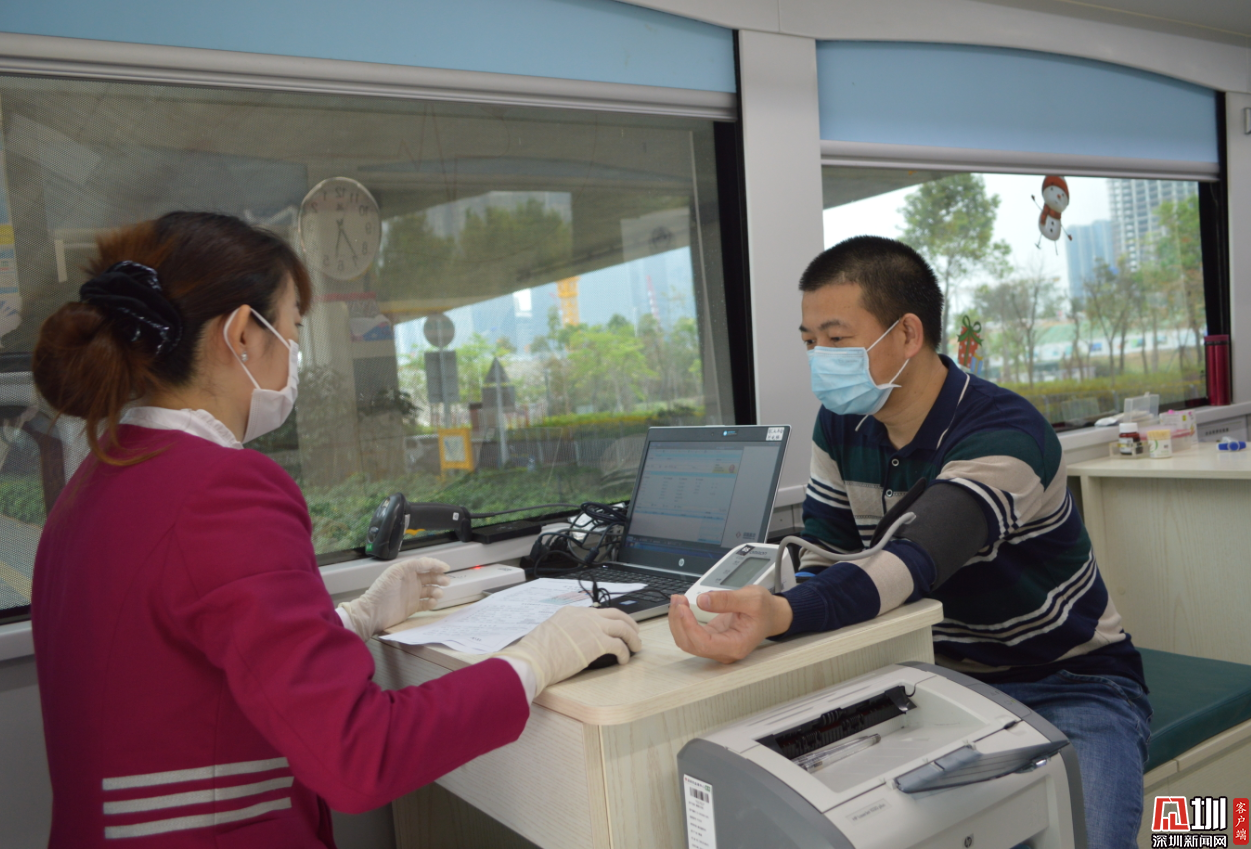 正式抽血之前,為了確保每位參與獻血的老師和家長們的身體狀況適合獻血,醫(yī)生為參與獻血的老師家長們進行基本的體檢(量血壓測心率采集血樣)。