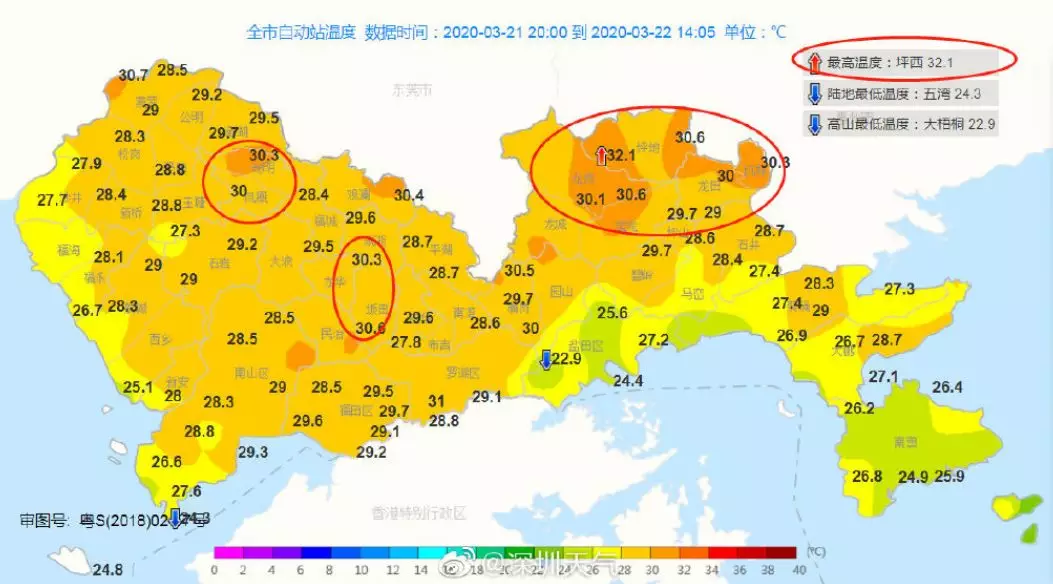 深圳有好幾個地方氣溫超過了30℃。