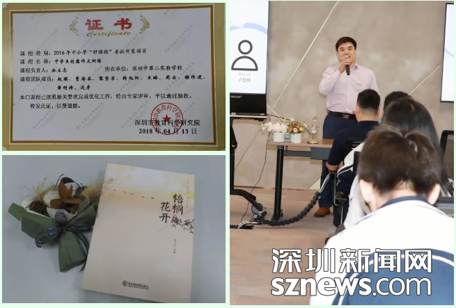 多年來(lái),孫立志老師一直努力實(shí)踐“快樂(lè)語(yǔ)文”“和語(yǔ)文生活化,生活語(yǔ)文化”的大語(yǔ)文教學(xué)理念,提倡并身體力行在語(yǔ)文教學(xué)實(shí)踐中,創(chuàng)設(shè)生活化的情境,讓語(yǔ)文教學(xué)與社會(huì)實(shí)踐緊密結(jié)合,激發(fā)學(xué)生興趣,引導(dǎo)學(xué)生深入創(chuàng)新思考和個(gè)性表達(dá),真正形成較強(qiáng)的語(yǔ)文能力,引導(dǎo)學(xué)生成長(zhǎng)為有學(xué)養(yǎng)、有高度、有見(jiàn)地、有情懷的大寫的人。他認(rèn)為,由于語(yǔ)文學(xué)科的工具性和人文性兼具的特性,語(yǔ)文教學(xué)對(duì)老師的要求較高,語(yǔ)文老師除了要做淵博的閱讀者、深刻的思想者、勤奮的寫作者、敬業(yè)的教育者,還要努力做一個(gè)興愛(ài)好廣泛、生動(dòng)有趣的學(xué)生心理上的“同齡人”,千方百計(jì)引導(dǎo)學(xué)生體驗(yàn)閱讀與思考,創(chuàng)新與寫作的樂(lè)趣,從而激發(fā)學(xué)生的語(yǔ)文學(xué)習(xí)的內(nèi)驅(qū)力,真正達(dá)到“教是為了不教”的目的。為此,孫立志老師在勤奮教學(xué)并取得優(yōu)異成績(jī)的同時(shí),努力讓語(yǔ)文教學(xué)真正在學(xué)生人生打下深深印記,奠基學(xué)生終生發(fā)展,他做了很多探索:開系列講座給學(xué)生講《春秋戰(zhàn)國(guó)——牛人的黃金時(shí)代》,開發(fā)全市繼續(xù)教育課給老師講《東周典型人物研究》,耕耘微信公號(hào)笑談歷史風(fēng)云,開發(fā)深圳市好課程《中學(xué)生創(chuàng)意作文訓(xùn)練》,帶領(lǐng)學(xué)生公開出版深圳第一部班級(jí)學(xué)生集體著作《梧桐花開》,指導(dǎo)大批學(xué)生在各級(jí)各類刊物發(fā)表文章,在各類語(yǔ)文比賽樂(lè)促教,以歌助學(xué),只不過(guò)是孫立志老師教學(xué)探索創(chuàng)新的一葉一花,相信師者每一點(diǎn)守責(zé)盡心的努力,都會(huì)助力學(xué)生人生之樹上結(jié)出香甜的果實(shí)。