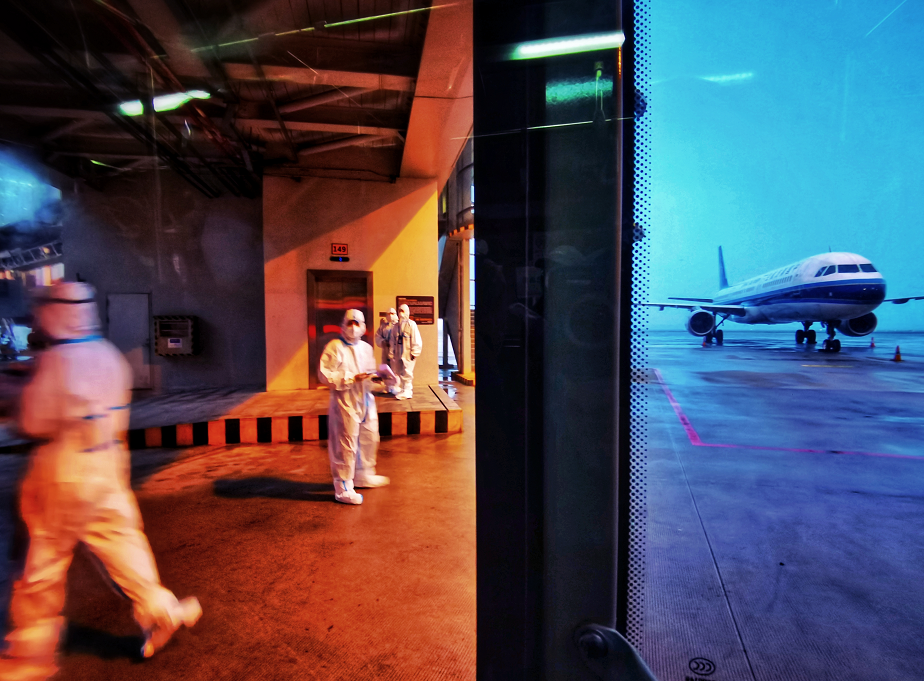 將近25個小時的路途,最困難的就是穿著防護服,要做到全程不吃不喝不上廁所。但是,為了自身和他人的健康,我只能克服。在轉乘的5個小時里,才喝了一些水,上了趟廁所。即便是上廁所時,我也是戴好一次性手套,用紙巾擦拭所有摸過的地方。