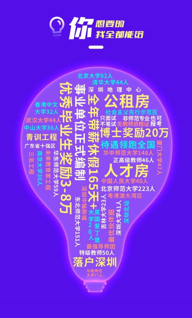 記者了解到,本輪招聘采取只面試、不筆試方式,非師范專業(yè)、無教師資格證者也可報(bào)考。一經(jīng)錄用,應(yīng)聘者可享受事業(yè)單位正式編制、落戶深圳、人才房、公租房、全年帶薪休假165天等待遇。其中,優(yōu)秀畢業(yè)生還將享受3萬 -8萬元獎勵,博士研究生享受20萬元獎勵,待遇領(lǐng)跑全國。
