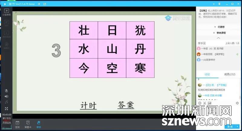 見圳客戶端、深圳新聞網(wǎng)2020年3月30日訊 (記者 潘寶儀 通訊員 王彎彎 )3月27日下午,龍華區(qū)第三外國(guó)語(yǔ)學(xué)校舉行首屆線上詩(shī)詞大會(huì),此次詩(shī)詞大會(huì)以全媒體聯(lián)動(dòng)的形式打破時(shí)空限制,用趣味競(jìng)賽的方式吸引了全校500余名學(xué)生的廣泛參與,掀起了同學(xué)們學(xué)習(xí)古詩(shī)詞的熱潮。