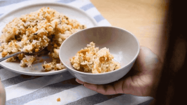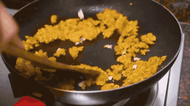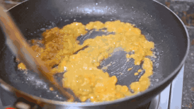 油鍋燒熱,不斷翻炒海膽,直到把海膽的水分炒干,只有動作快和把握好火候,才能保留海膽的鮮度。海膽炒得呈粒狀就可加入蒜蓉,這樣可以更好地刺激海膽香味。把米飯和海膽融合一起翻炒,使每一粒米飯都充分接觸油和熱量,這樣的炒飯才會松軟可口。最后加一點醬油,灑上一把蔥花銷魂的海膽炒飯就出爐啦。
