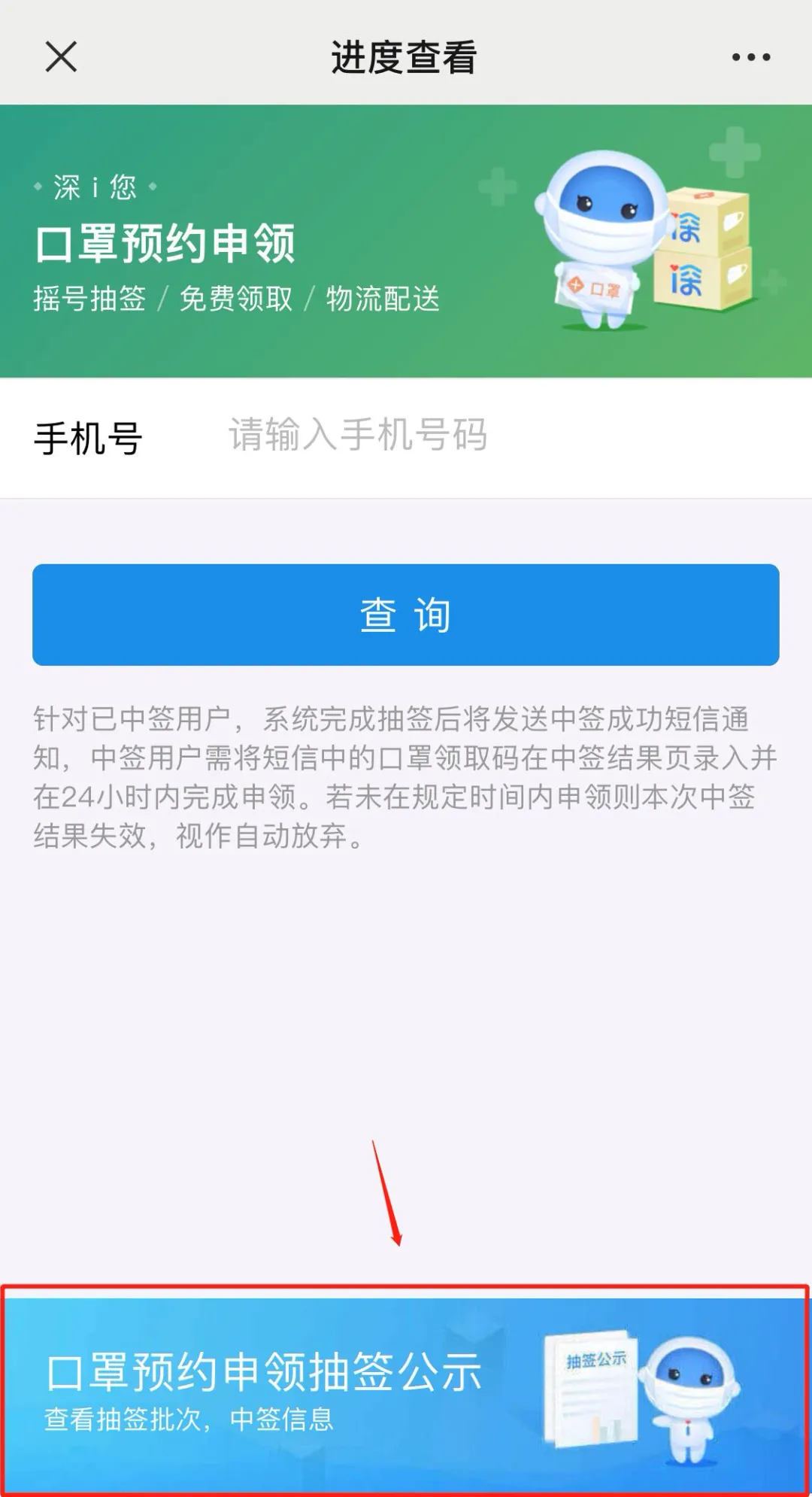 個(gè)人中簽名單:可在“i深圳”微信公眾號(hào)首頁(yè)-口罩預(yù)約-市民專(zhuān)區(qū)-進(jìn)度查看的頁(yè)面下方“口罩預(yù)約申領(lǐng)抽簽公示”查看