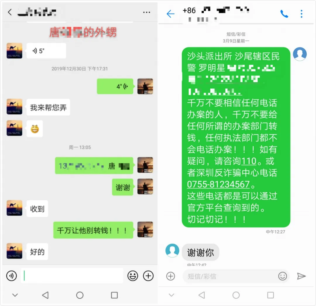 3月9日上午,唐先生也接到了一通詐騙來電。民警在接到預警后,立即趕到唐先生住所,發(fā)現(xiàn)唐先生并不在住所,而且手機處于關機狀態(tài)。爭分奪秒時刻,民警通過其老鄉(xiāng)找到了唐先生的外甥,成功聯(lián)系上了在外地的唐先生。原來,唐先生接到了詐騙電話,對方詢問唐先生是否需要貸款,表示他們可以用非常簡單的手續(xù)幫忙貸到款,前提是需要先交保證金。就在唐先生猶豫不決的時候,接到了民警和外甥的電話,避免了可能造成的損失。