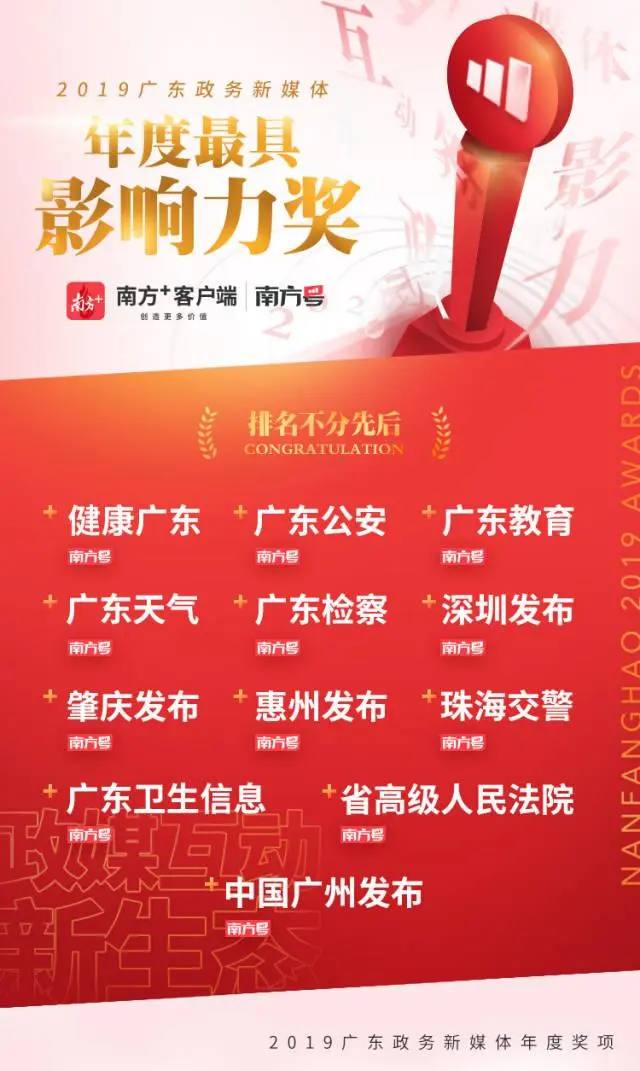 ▲2019年廣東政務(wù)新媒體年度最具影響力獲獎名單