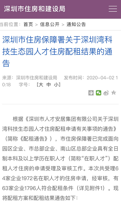 深圳特區(qū)報2020年4月2日訊 讀特記者4月2日從深圳市住房保障署獲悉,該署已完成面向園區(qū)企業(yè)、市總部企業(yè)、南山區(qū)總部企業(yè)具有全日制本科及以上學(xué)歷在職人才(簡稱“在職人才”)配租人才住房的申請受理及審核工作。本次共受理64家企業(yè)1972名在職人才的住房申請,經(jīng)審核,有63家企業(yè)1796人符合配租條件。相關(guān)信息可登錄深圳市住房和建設(shè)局網(wǎng)站查看。
