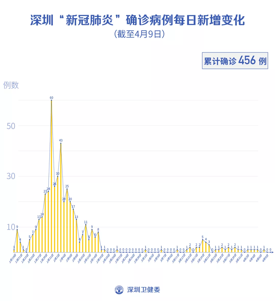 截至4月9日24時,深圳累計報告新冠肺炎病例456例。4月9日當(dāng)天新增出院1例。