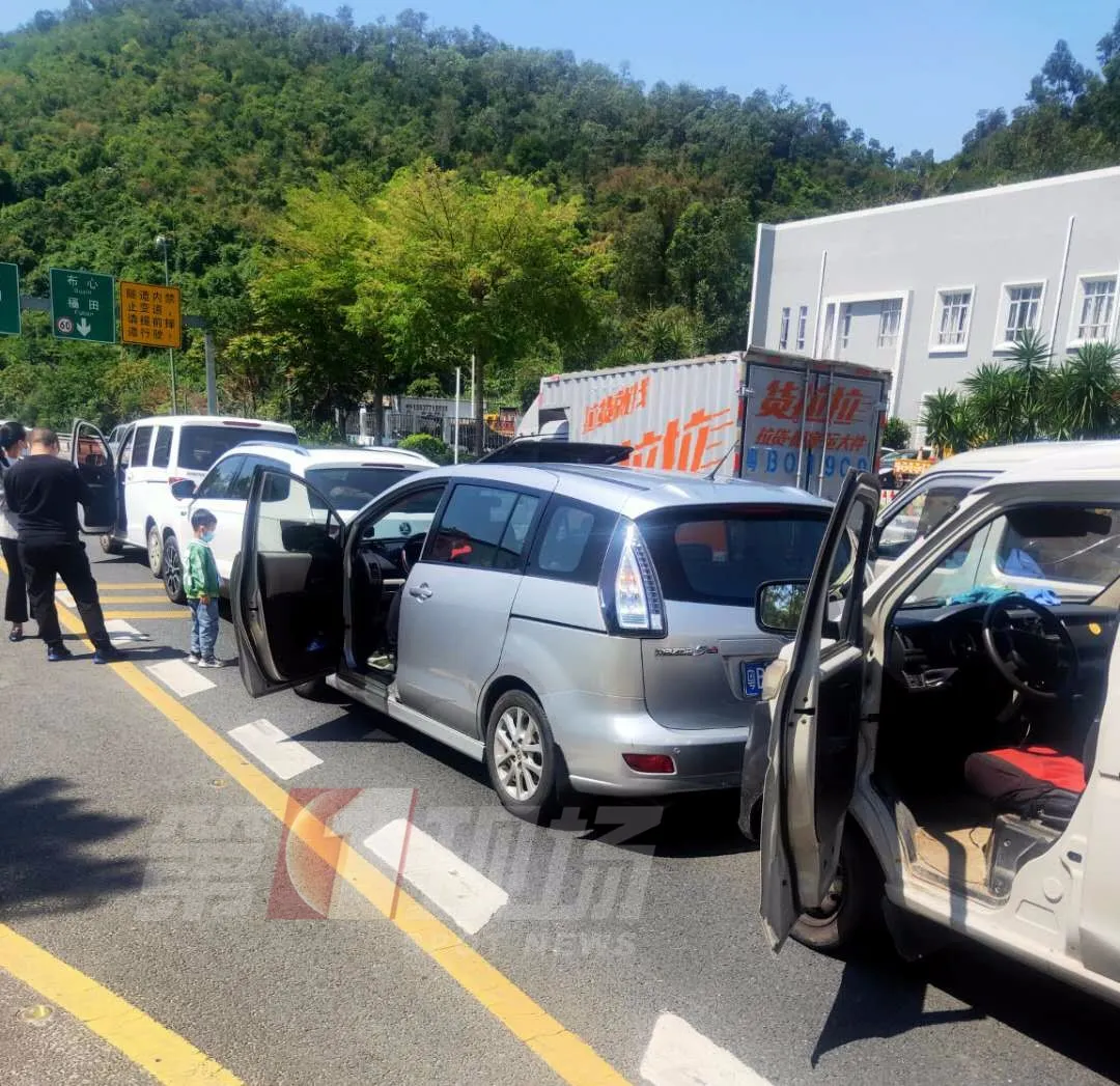 今天上午11點(diǎn)左右,記者來(lái)到丹平快速了解情況,看到往市區(qū)方向出現(xiàn)多車(chē)緩行的情況,而在九尾嶺隧道前一百米左右的位置發(fā)生了一起交通事故,造成四車(chē)追尾。