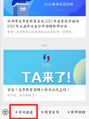 1)進(jìn)入“龍華教育”公眾號(hào),點(diǎn)擊“資訊速遞”;