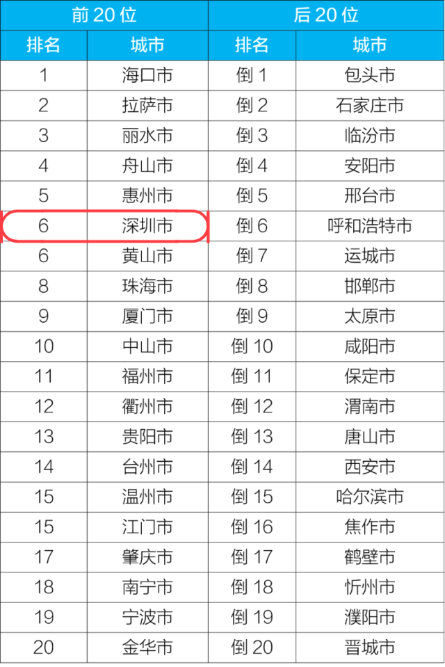 1-3月,168個重點城市中包頭、石家莊、臨汾市等城市空氣質量相對較差(從倒數第1名至倒數第20名);海口、拉薩、麗水市等城市空氣質量相對較好,深圳排名第6。