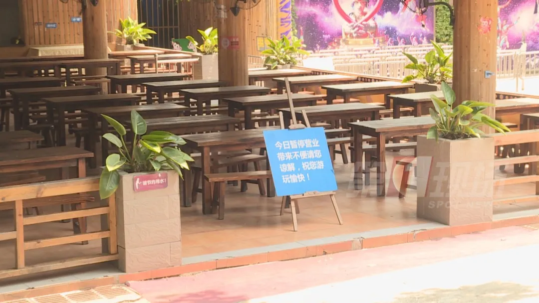 為了安全起見,動(dòng)物園在餐飲、交通工具方面,采取了更加嚴(yán)格的防疫措施。中午12點(diǎn),記者看到,園內(nèi)往日熱鬧的配套餐廳,都擺出了“暫停營(yíng)業(yè)”的告示。