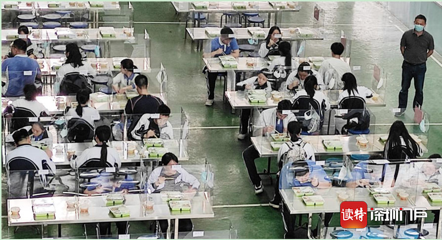 深圳特區(qū)報(bào)2020年4月27日訊 4月27日,深圳高三、初三學(xué)子返校。食堂是校園防控工作的重點(diǎn),中午時(shí)分,學(xué)生就餐開始,實(shí)行錯(cuò)峰就餐、分區(qū)就餐。有的學(xué)校將每張餐桌用有機(jī)玻璃隔板分隔用餐區(qū)域,有的學(xué)校在空間足夠的條件下實(shí)行單人單桌,按號(hào)就座。