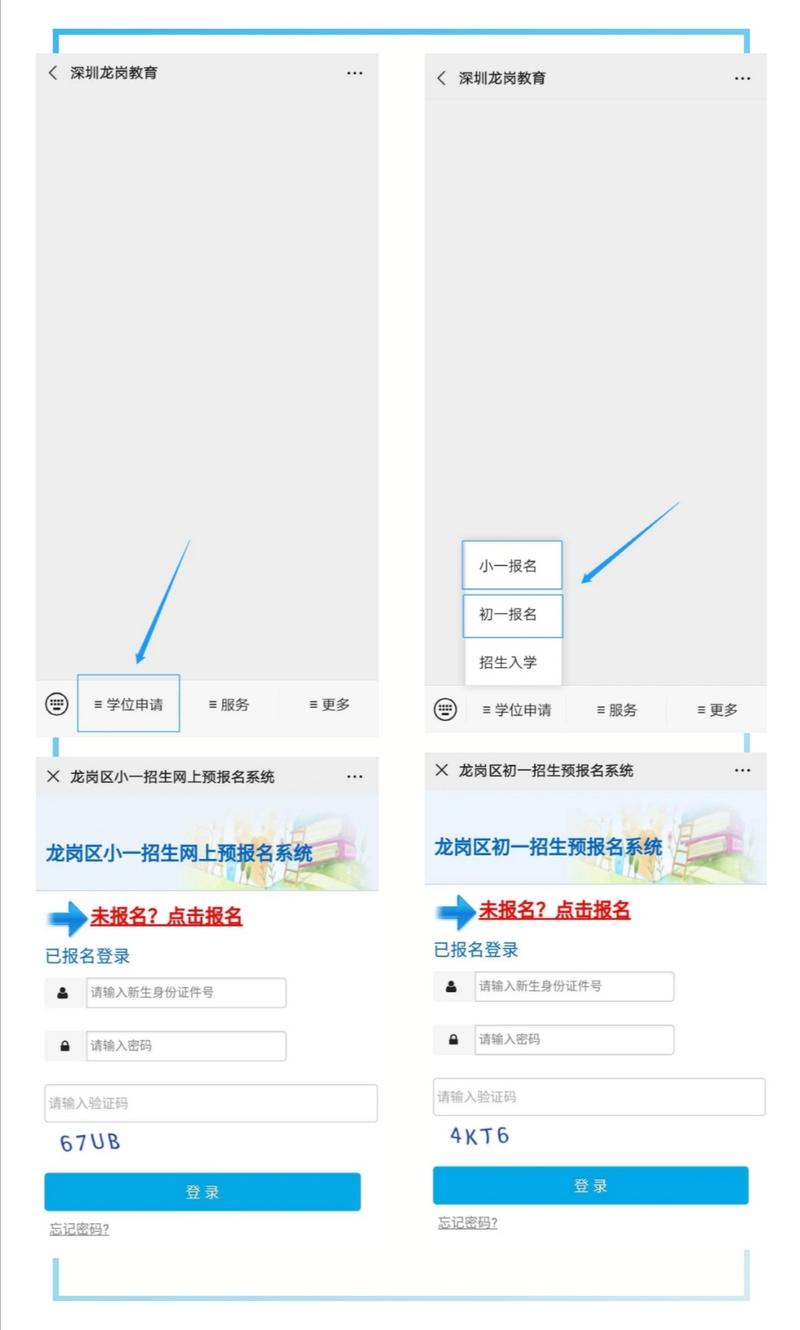 和以往一樣,家長可以登錄龍崗政府在線網(wǎng)站的“龍崗區(qū)教育局基礎(chǔ)教育科”頁面(http://www.lg.gov.cn/bmzz/zs/)進行學(xué)位申請報名,不過今年,家長多了一個更加便捷的報名方式,通過關(guān)注“深圳龍崗教育” 微信公眾號,在“學(xué)位申請”欄目中點擊“小初一報名”,憑適齡兒童、少年身份證號進入,填寫學(xué)位申請信息,填報學(xué)校志愿。確認信息無誤后直接保存,同時產(chǎn)生申請學(xué)位的流水號,即完成網(wǎng)上預(yù)報名。