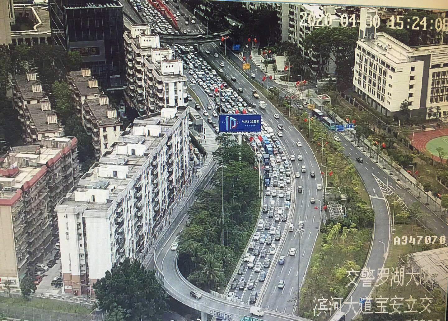 濱河大道是深圳市最先進(jìn)入晚高峰節(jié)奏的道路,15時30分,濱河大道寶安立交路段西往東方向開始出現(xiàn)車多緩行。車流量慢慢增多,到18時許,濱河大道西往東方向發(fā)生嚴(yán)重交通擁堵,從竹子林立交到鹿丹村路段一片“紅燈”。