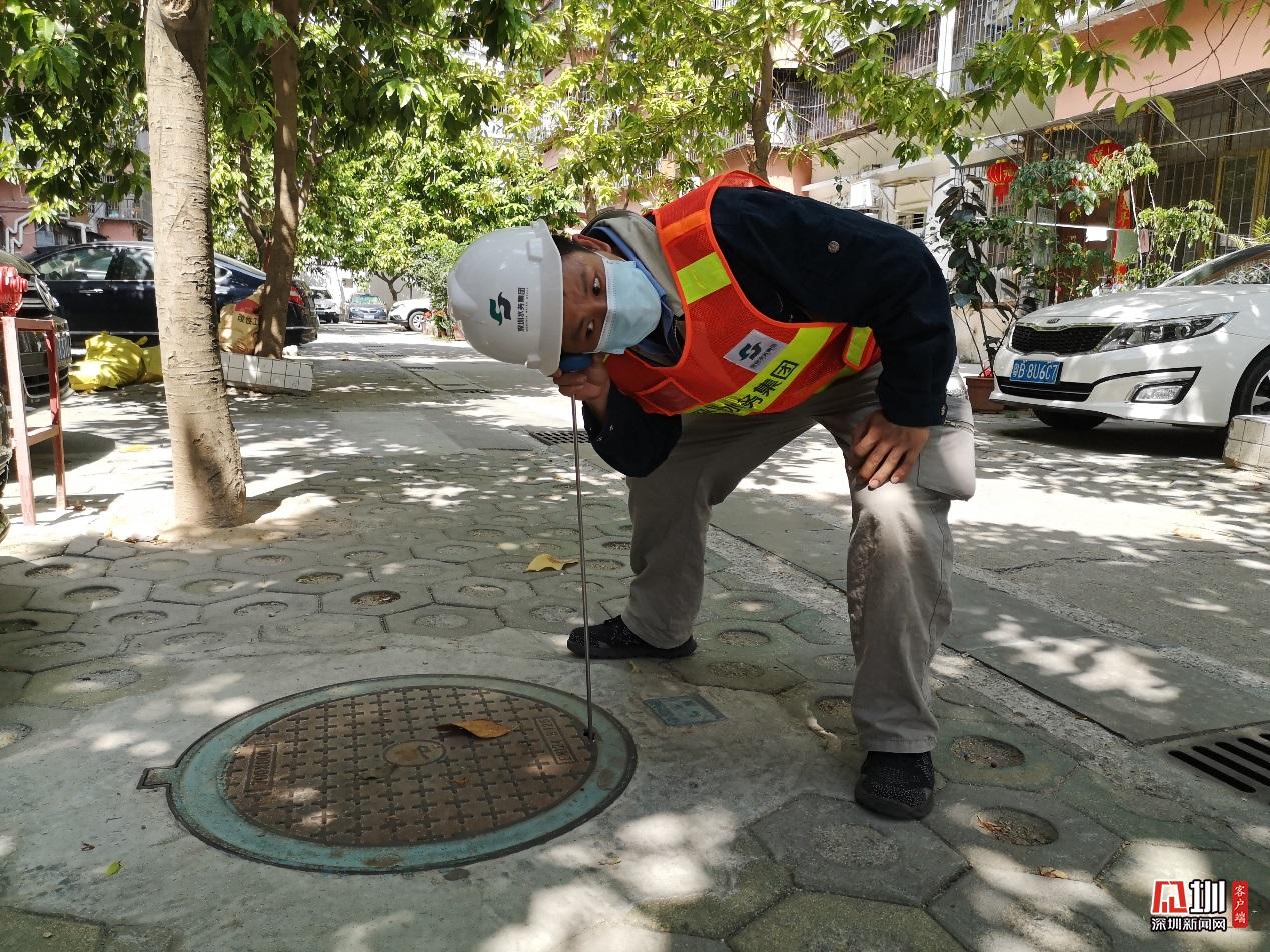 福田分公司管網(wǎng)工程師何勝平,疫情期間深入坂田街道“健康驛站”小區(qū)檢查排水管網(wǎng),經(jīng)一天辛勤勞作后,衣衫濕透,滿臉汗水。