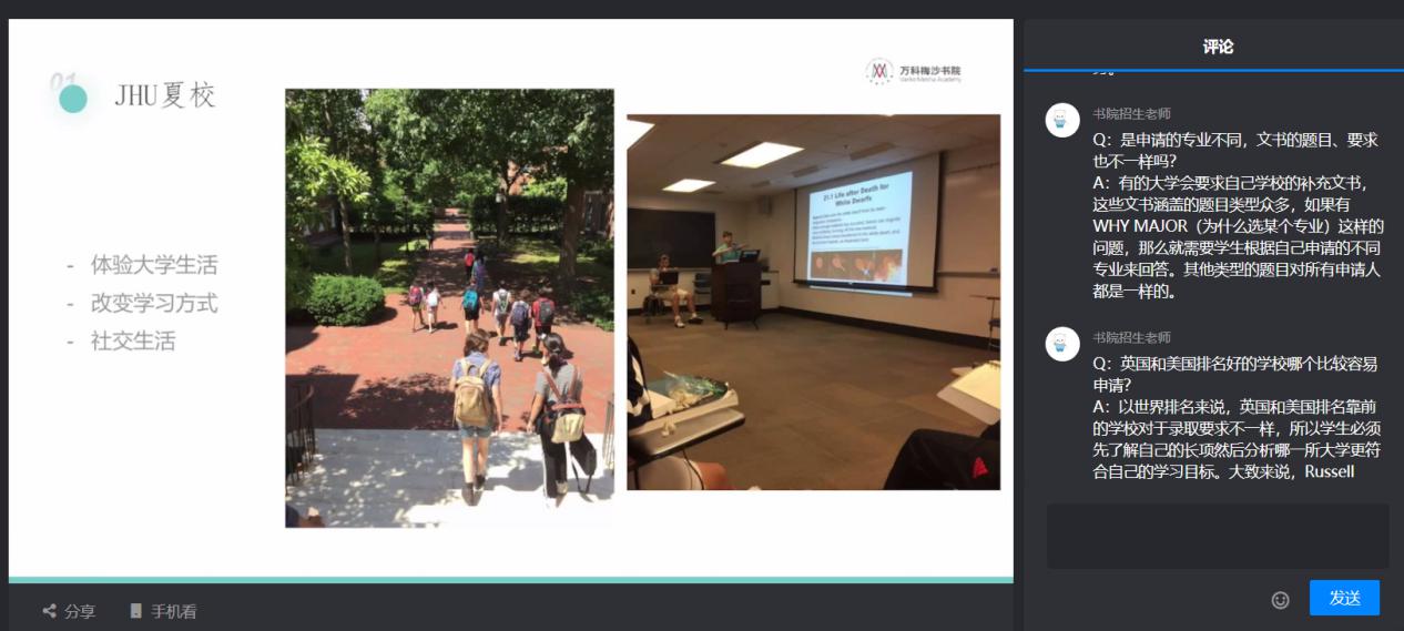 學(xué)生通過(guò)直播分享升學(xué)經(jīng)驗(yàn),招生老師同步為觀眾答疑。