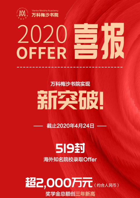 見(jiàn)圳客戶端·深圳新聞網(wǎng)2020年5月6日訊 (記者 陳彬)2020海外本科申請(qǐng)季,梅沙畢業(yè)生用實(shí)力創(chuàng)造了新的突破。據(jù)不完全統(tǒng)計(jì),截止4月24日,519封國(guó)外知名院校錄?。ㄆ渲忻绹?guó)綜合大學(xué)及文理學(xué)院 TOP30錄取41封、TOP50錄取193封、世界頂尖藝術(shù)院校錄取67封)、超2,000萬(wàn)元人民幣獎(jiǎng)學(xué)金的升學(xué)成績(jī)創(chuàng)下了萬(wàn)科梅沙書(shū)院三年新高。