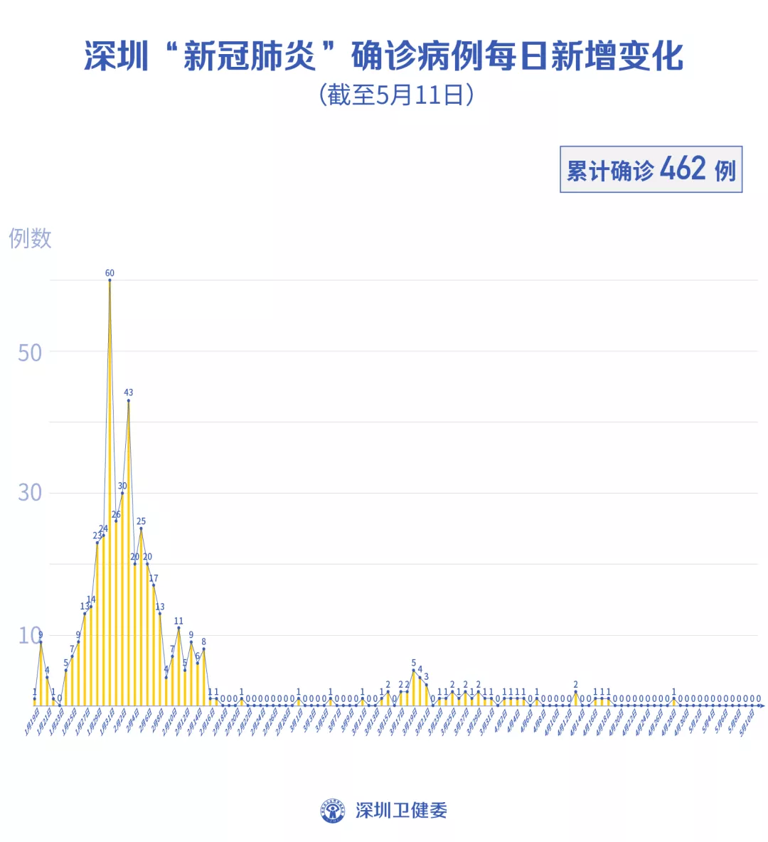 截至5月11日24時(shí),深圳累計(jì)報(bào)告新冠肺炎病例462例。