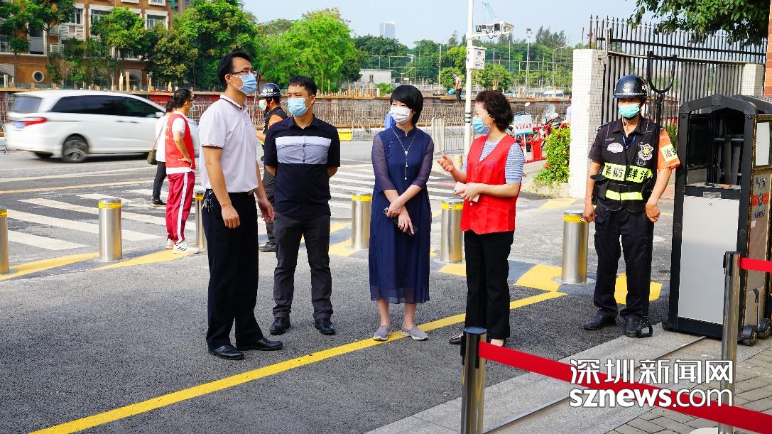 南山區(qū)委教育工委書記馬穎麗來到陽光小學(xué),了解學(xué)校的復(fù)學(xué)情況。在校領(lǐng)導(dǎo)的帶領(lǐng)下,馬書記參觀了食堂,并去到學(xué)校4-6年級(jí)的每一間教室,重點(diǎn)關(guān)注了孩子們?cè)诩疫M(jìn)行“空中課堂”的學(xué)習(xí)情況、復(fù)學(xué)第一天的心情感受、這段時(shí)間的心理狀態(tài)等;細(xì)微之處,馬書記還關(guān)注到了孩子的握筆姿勢(shì)、上課坐姿、書包重量等。在巡視過程中,馬書記對(duì)陽光小學(xué)的防疫環(huán)境創(chuàng)設(shè)、教室的良好通風(fēng)配置、走廊的定崗教師安排等細(xì)節(jié),也給予了肯定。