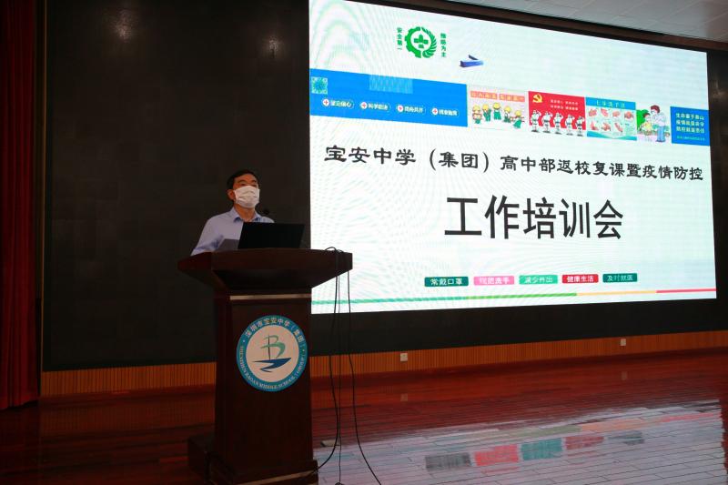 早在3月,返校復課的相關準備工作就已經(jīng)在緊鑼密鼓地推進中。為了規(guī)范師生返校復課各項措施和要求,在深圳市教育局發(fā)布復課防控疫情工作指引之前,彭鍛華就結(jié)合疫情形勢變化與學校實際,提出制定寶中集團的《學生學習生活一日指引》《教師工作生活一日指引》,對在校師生每天各個 時段 、各個 地點 的學習、工作和生活做出了明確指引。