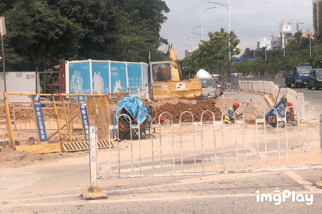 占道施工人員忙得熱火朝天