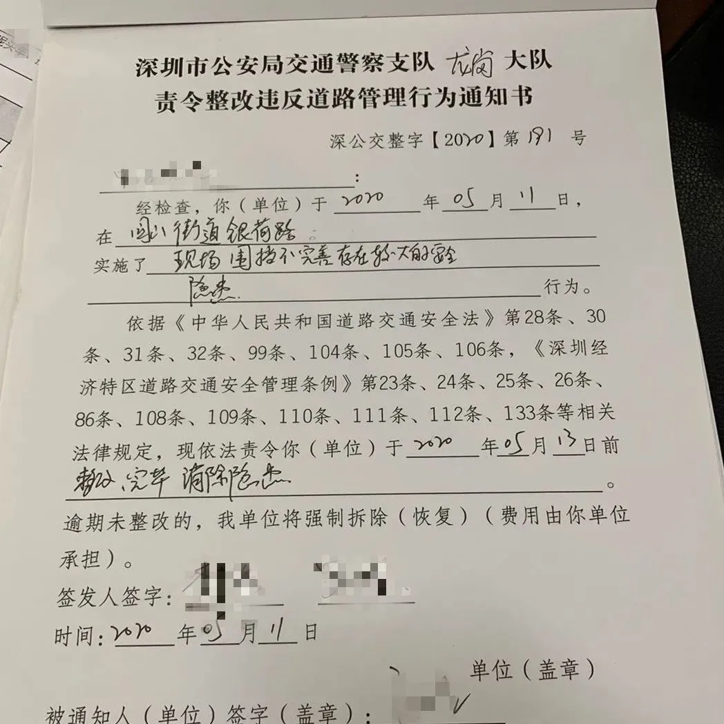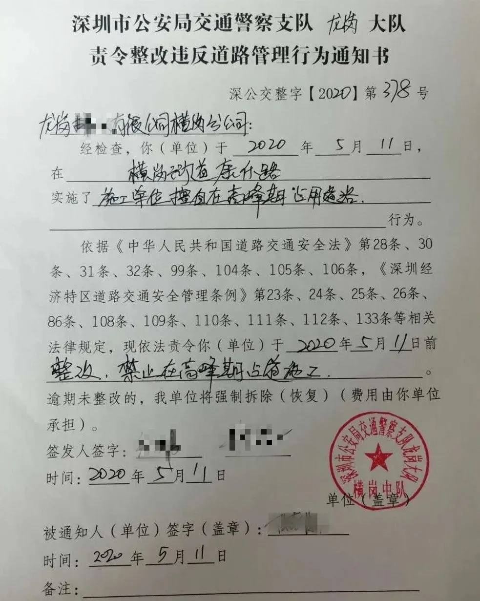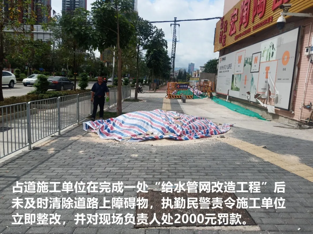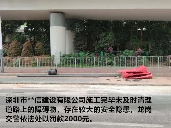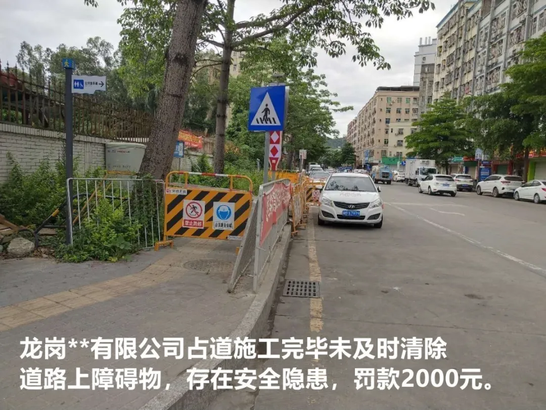 對該施工單位在橫坪連接線路段占道施工導(dǎo)致人行道不連貫、機(jī)非沖突,存在較大交通安全隱患的行為,龍崗交警依法處罰10000元并責(zé)令立即整改。