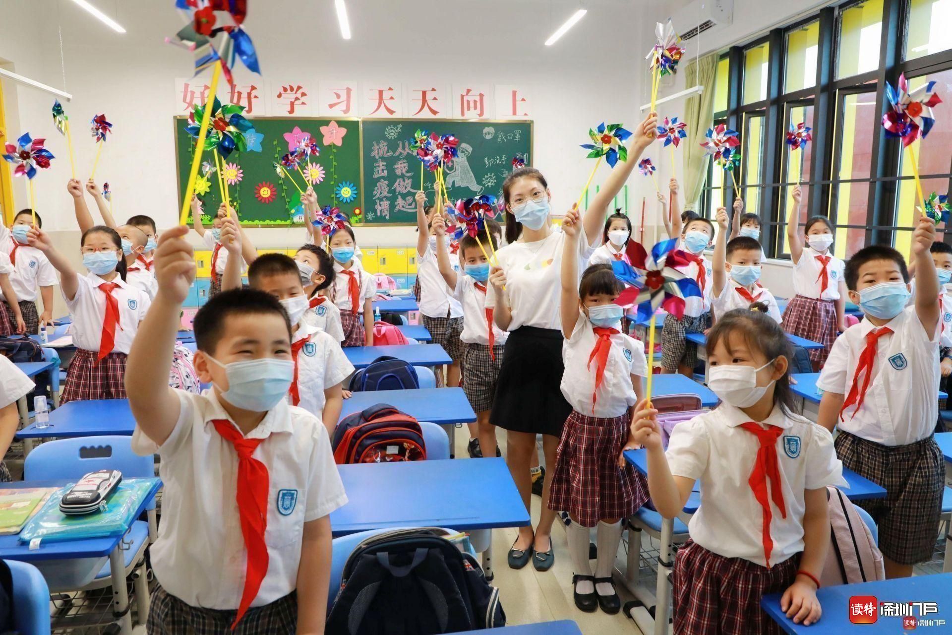 華附龍園學(xué)校:“大風(fēng)車吱呀吱喲喲地轉(zhuǎn),這里的風(fēng)景呀真好看,天好看,地好看,還有一起快樂的小伙伴……”與高年級的返校日不同,孩子們一早返校,開心得掩不住的笑臉,如花兒朵朵,在口罩后綻放。(讀特記者李麗)