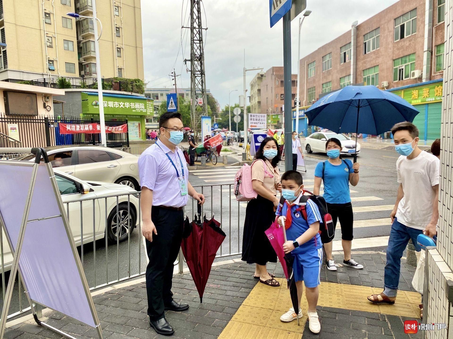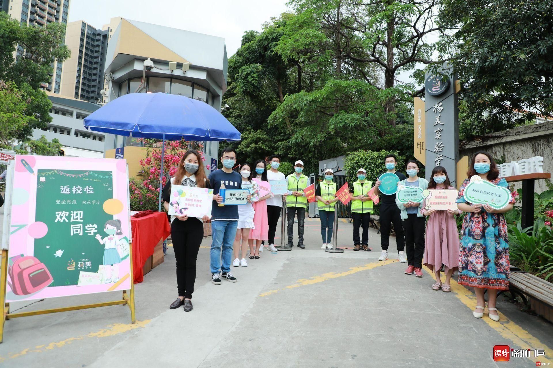 花城小學(xué):點(diǎn)頭問好,微笑傳情,因?yàn)橛袗郏喔粢幻?。老師們站在校門口歡迎“小花”全面歸來!(讀特記者李麗)
