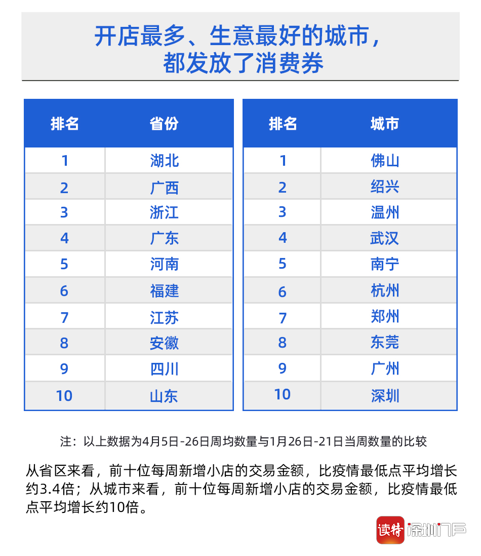 值得注意的是,排名前十的省份及城市,絕大多數(shù)都通過(guò)支付寶發(fā)放了消費(fèi)券。4月份以來(lái),佛山、珠海、東莞、清遠(yuǎn)、深圳羅湖和龍崗區(qū)陸續(xù)通過(guò)支付寶等平臺(tái)發(fā)放消費(fèi)券,廣東發(fā)放消費(fèi)券總額已經(jīng)超過(guò)10億元,成為全國(guó)發(fā)放消費(fèi)券最多的省份之一。尤其是上述排名第一的佛山,在市區(qū)兩級(jí)消費(fèi)券刺激下,線下餐飲、美容美發(fā)等行業(yè)迎來(lái)一波消費(fèi)熱潮。阿里本地生活數(shù)據(jù)顯示,自佛山消費(fèi)券發(fā)布后,佛山線下餐飲門(mén)店新開(kāi)業(yè)環(huán)比增幅超過(guò)35%,餐飲類(lèi)消費(fèi)訂單量環(huán)比增幅也超過(guò)了152%,美容美發(fā)訂單增長(zhǎng)了350%以上。