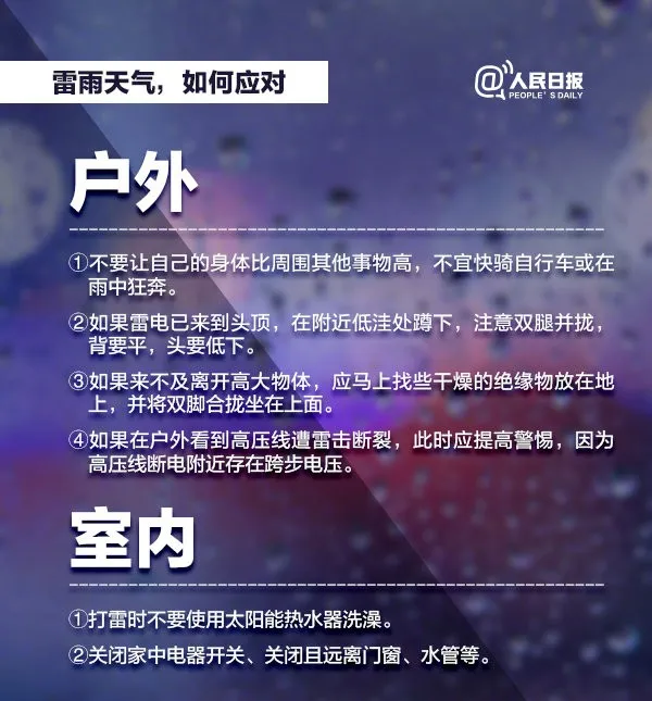 √雷雨天氣容易發(fā)生泥石流、山體滑坡,如在野外,請(qǐng)不要在室外逗留,盡快遠(yuǎn)離危險(xiǎn)的地方。