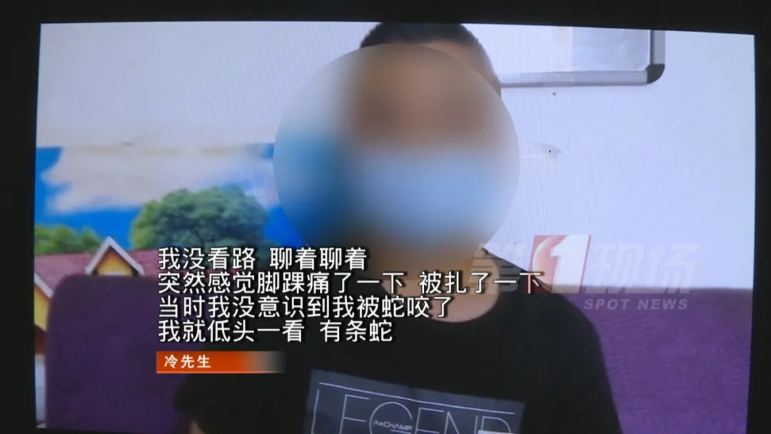 5月21日晚上7點多,市民冷先生和家人吃完晚飯后,獨自來到位于坑梓的五馬峰公園散步。他一邊散步一邊跟朋友視頻聊天。剛走沒多久,冷先生突然感覺自己的右腳有點不對勁,有被扎了一下的感覺。他低頭一看,原來是被蛇咬傷了。