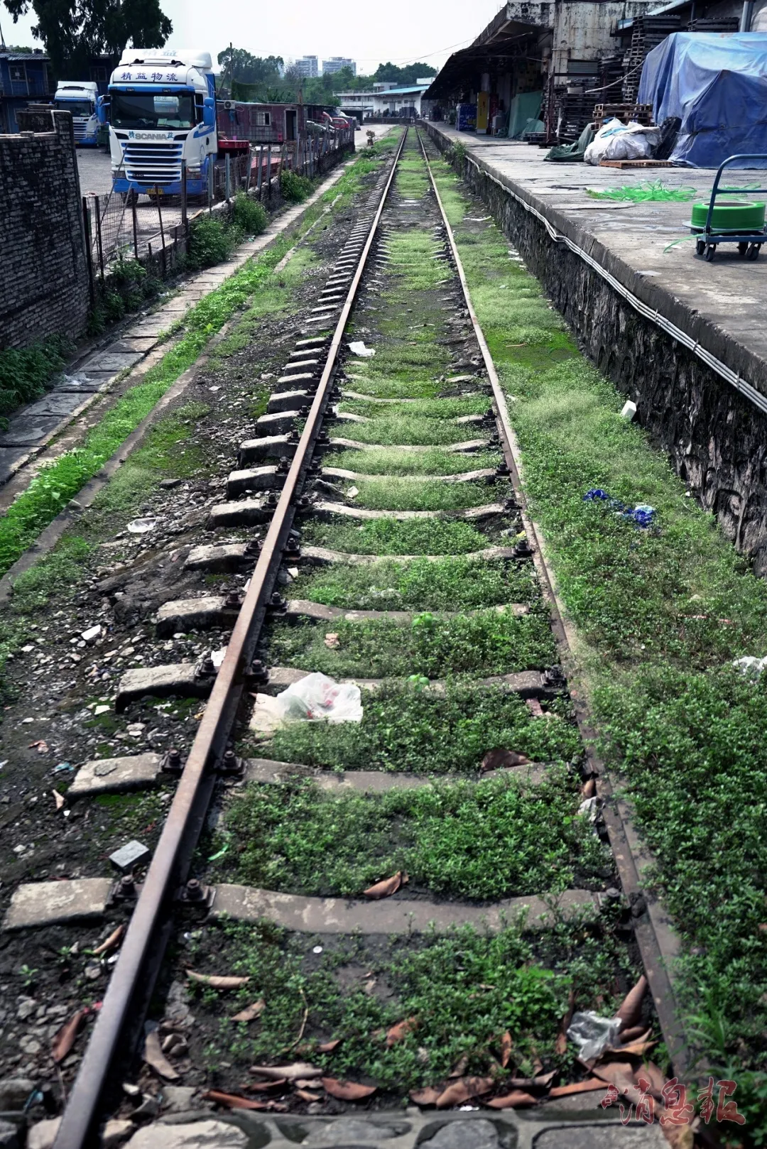 ▲一條貨運(yùn)專線逐漸被綠植覆蓋,好久沒(méi)有列車(chē)駛過(guò)。