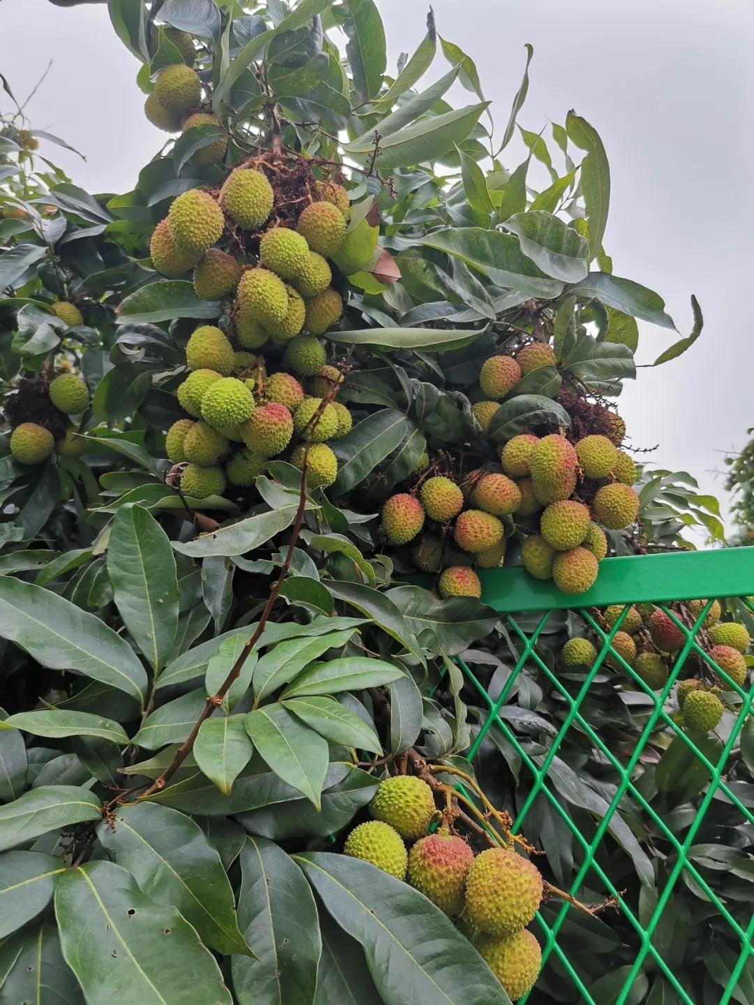在西麗果場第二分場,記者看到,一串串個頭飽滿的妃子笑壓彎了樹枝,青中泛紅,甚是誘人。隨意采摘一顆,果肉細嫩,甘甜多汁?!板有θ种环杭t,是最新鮮美味的時候?!鼻窠鸬f,今年南山荔枝妃子笑收成屬于中等偏上年份,整個西麗果場場部的產(chǎn)量估計有5萬公斤,本月底正式上市。