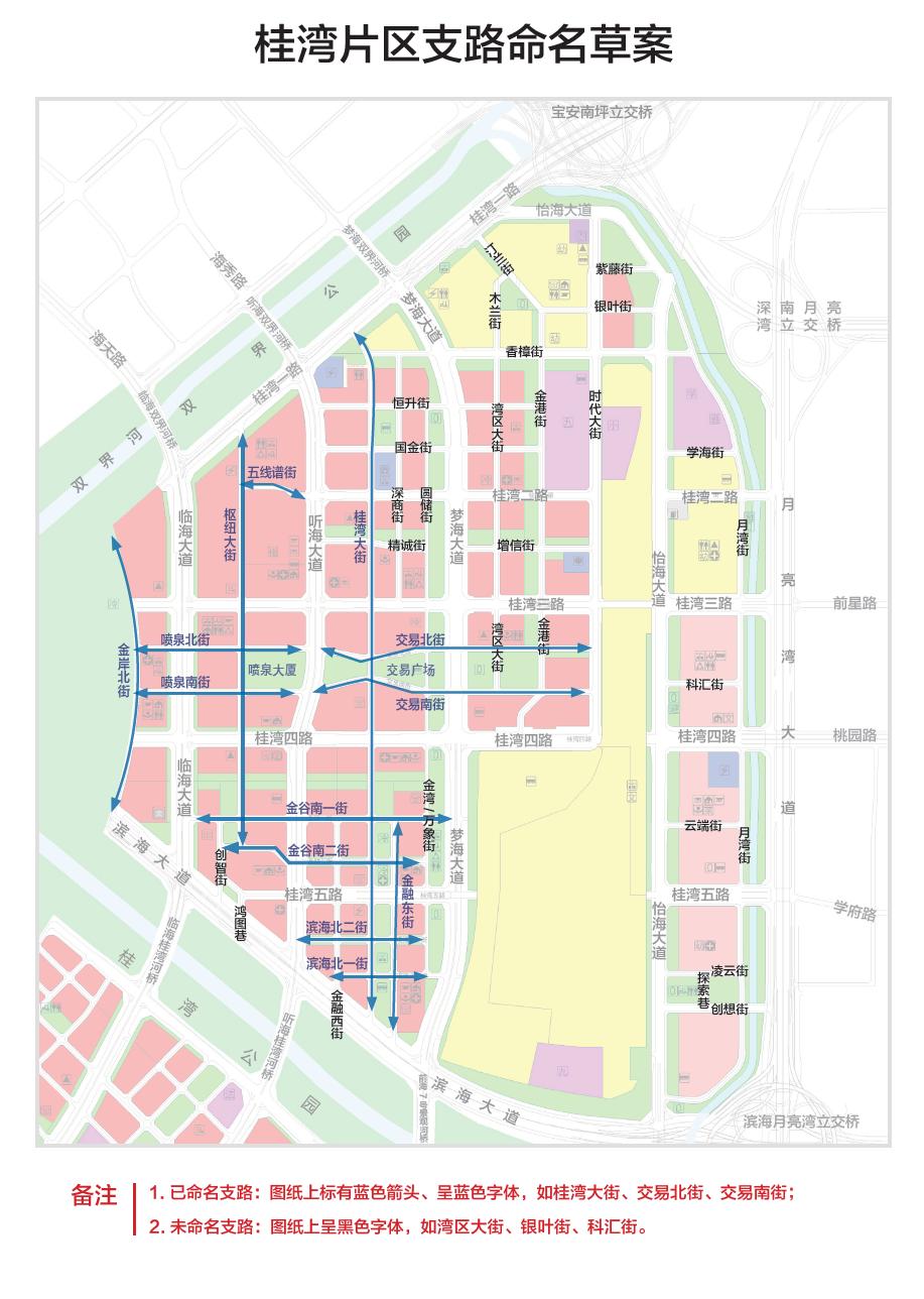 其中,桂灣片區(qū)共約37條(包括已命名支路13條,本次擬定支路命名草案24條),前灣片區(qū)約39條(包括已命名支路20條,本次擬定支路命名草案19條),媽灣片區(qū)共61條(包括已命名支路12條,本次擬定支路命名草案49條)。同時,將代表前海門戶通道的主干道“前灣一路”更名為“前海大道”。
