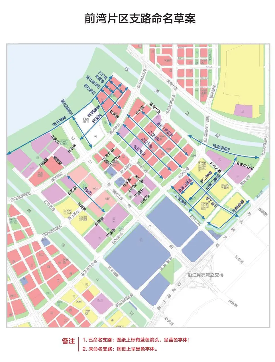 本次命名草案按照相關(guān)法規(guī)文件,結(jié)合前海桂灣、前灣、媽灣各片區(qū)的規(guī)劃定位、功能布局以及建設(shè)情況,針對三大片區(qū)和重要功能區(qū)功能、項(xiàng)目布局等特征,對前海15平方公里支路進(jìn)行了全覆蓋命名。