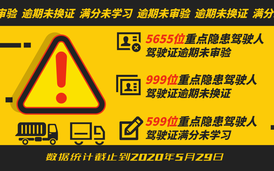 見圳客戶端·深圳新聞網(wǎng)2020年6月1日訊 據(jù)“深圳交警權(quán)威發(fā)布”微信公眾號(hào)消息,為進(jìn)一步加強(qiáng)重點(diǎn)車輛監(jiān)管,深圳市車管所深入開展重點(diǎn)車輛隱患清零工作,發(fā)現(xiàn)了一大批“重點(diǎn)人物”,5655位重點(diǎn)駕駛?cè)笋{駛證逾期未審驗(yàn),999位重點(diǎn)駕駛?cè)笋{駛證逾期未換證,599位重點(diǎn)駕駛?cè)笋{駛證滿分未學(xué)習(xí)。